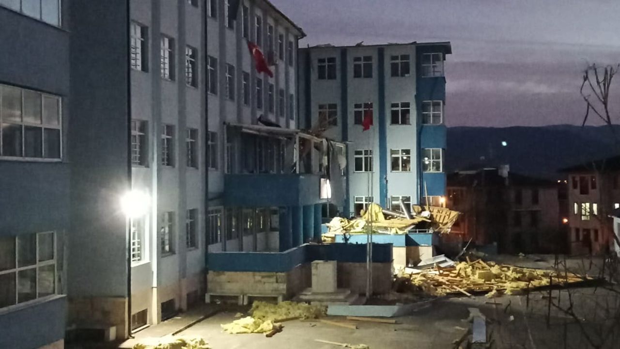Olay, akşam saatlerinde merkeze bağlı Güzelbahçe'de bulunan Atatürk Anadolu Lisesi'nde meydana geldi. Kuvvetli rüzgarın etkisiyle okulun çatısı uçtu. Çatıdan kopan sac ve demir parçaları çevreye savrulurken, ihbar üzerine bölgeye polis ve itfaiye ekipleri sevk edildi. Polis ekipleri çevrede güvenlik önlemleri alırken, itfaiye görevlileri de yola düşen parçaları temizledi.
