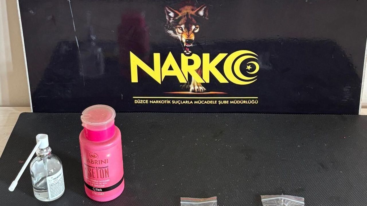 Düzce Cumhuriyet Başsavcılığı koordinesinde Düzce İl Emniyet Müdürlüğü Narkotik Suçlarla Mücadele Şube Müdürlüğü ekipleri tarafından, S.A. isimli şüphelinin uyuşturucu madde ticareti yaptığı bilgisine ulaşıldı. Şüphelinin Ağa Mahallesi'ndeki evine polis tarafından operasyon düzenlendi. Operasyonda 2 parça halinde 165 gram sıvı sentetik kannabinoid maddesi ele geçirildi. Gözaltına alınan S.A., çıkarıldığı mahkeme tarafından tutuklandı. (DHA)