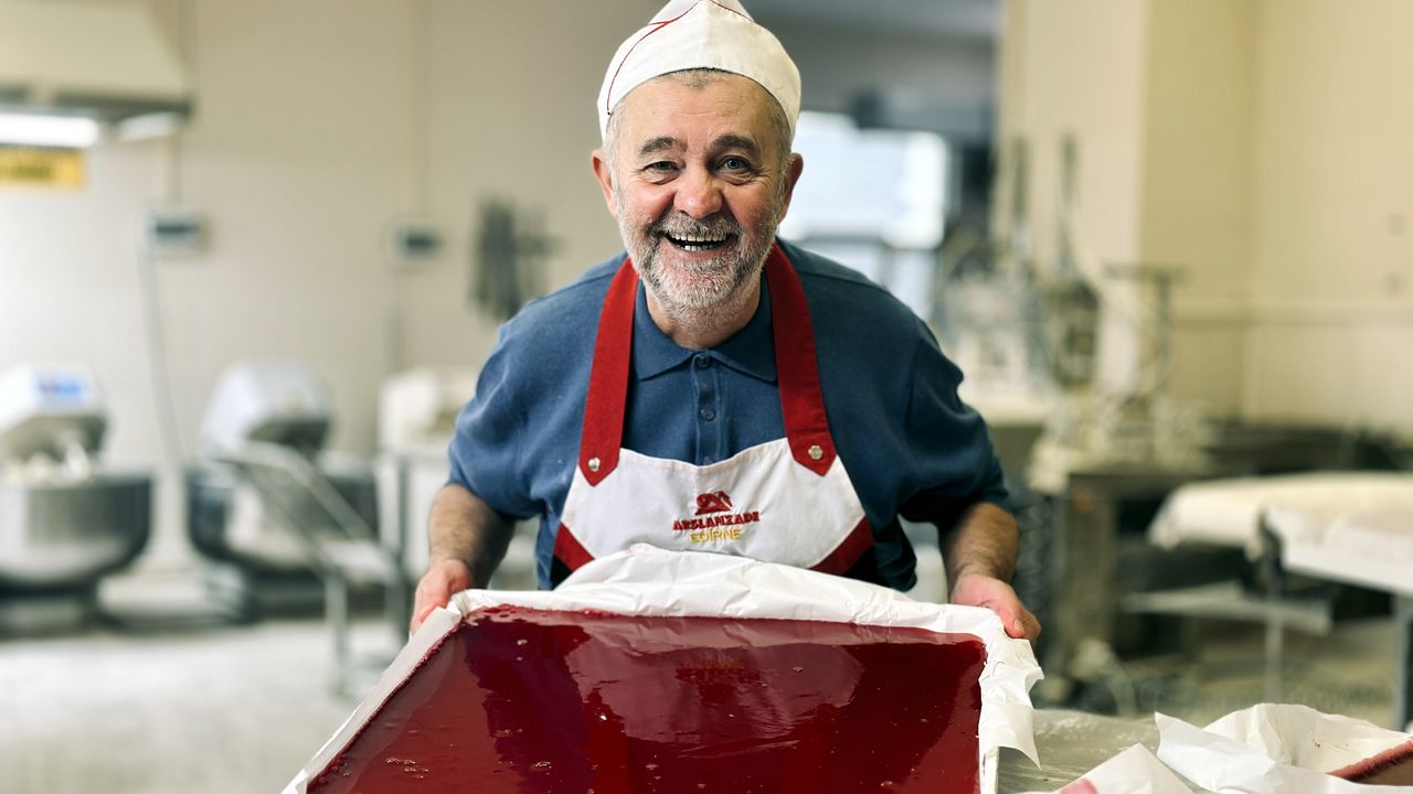 Umut IŞIK-Batuhan SEVER/EDİRNE, (DHA)- EDİRNE’de şekerleme ustası Arif Meriç (67), kentin coğrafi işaret tescilli meşhur tava ciğerinin yanında sunulan Karaağaç acı biberini, lokumla birleştirdi. Acı biberli lokuma ‘Dünya Hali’ adını veren Meriç, "Önce tatlandırıyor, ‘ha bunda acı falan yok’ diyor müşteri. Ondan sonra bakıyorum gözlerinden mutluluk gözyaşı geliyor. Tatlı acı, ikisi bir arada. Bu bir ‘dünya hali’ lokumudur" dedi.