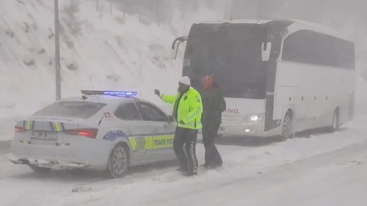 İl Emniyet Müdürlüğü Trafik Denetleme Şube Müdürlüğü ekipleri, yoğun tipi nedeniyle Kayseri- Erciyes yolu üzerinde tur otobüsünün hareket kabiliyetini yitirdiği bilgisi üzerine çalışma başlattı. Bu kapsamda, tur otobüsünde mahsur kalan 44 kişi, ekipler tarafından kurtarıldı. Kurtarılanlar, araçlarla şehir merkezine götürüldü. (DHA)