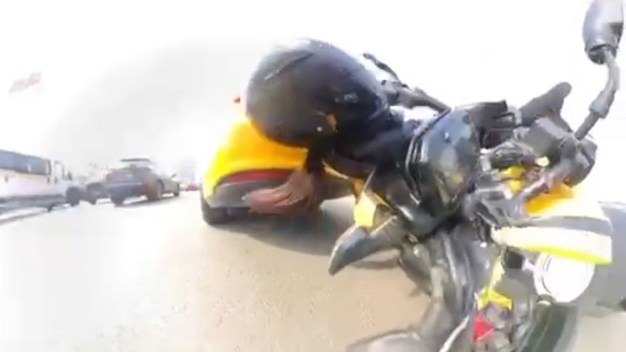 Kaza, dün öğle saatlerinde Nilüfer ilçesinde meydana geldi. Akan trafikte seyir halinde olan motosikletin sürücüsü, etrafına bakındığı sırada ulaşım durdu. Duran trafiği fark etmeyen sürücünün kullandığı motosiklet, önündeki taksiye çarpıp, devrilen motosikletten düştü. O anlar sürücünün aksiyon kamerasına yansıdı. (DHA)