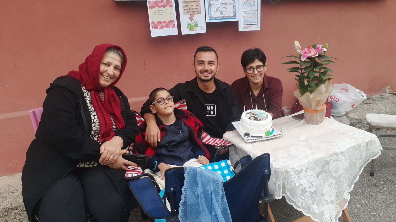 İlkadım ilçesi Kadıköy Mahallesi’nde yaşayan 4'üncü sınıf öğrencisi Asrın Demir, serebral palsi (beyin felci) nedeniyle Milli Eğitim Bakanlığı’nın ‘Evde Eğitim Uygulaması’ndan yararlandı. Demir, 24 Kasım Öğretmenler Günü nedeniyle kendisine evinde eğitim veren sınıf öğretmeni Mehmet Oğul’a sürpriz yapıp, bir kutlama organize etti. Asrın, evlerinin önünde yapılan kutlamada, üzerinde fotoğrafları bulunan ve 'Biz birlikte güçlüyüz' mesajı yazan pastayla öğretmeninin 'Öğretmenler Günü'nü kutladı. Asrın’ın mutluluğu, öğretmenini de duygulandırdı. (DHA)