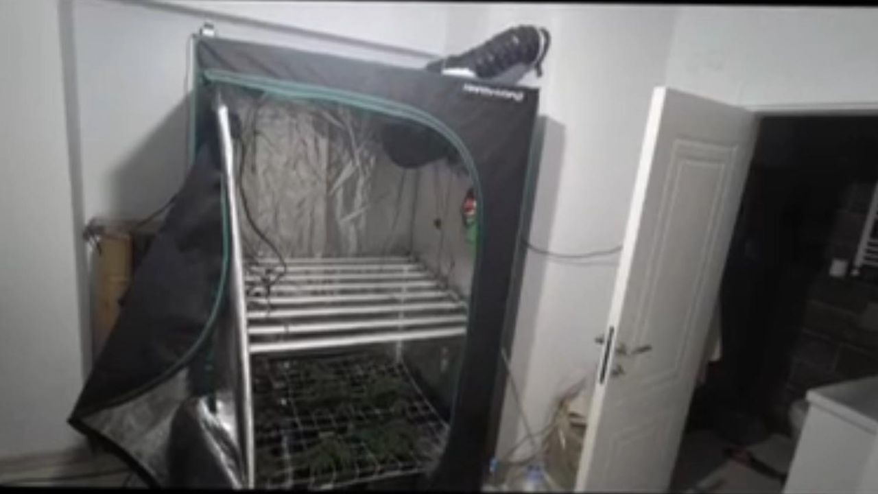 İl Jandarma Komutanlığı ekipleri, Odunpazarı ilçesindeki 3 farklı evde iklimlendirme sistemi kurularak uyuşturucu imal edildiği bilgisi üzerine operasyon gerçekleştirdi. Jandarmanın takibe aldığı 3 şüphelinin evlerine baskın yapıldı. Aramalarda 84 gram esrar, 9 kök kenevir bitkisi, 18 parça iklimlendirme malzemesi ve bitki besin maddeleri ele geçirildi. Gözaltına alınan 3 şüpheli, sağlık kontrolünden geçirilip, ifadeleri için Jandarma Komutanlığı’na götürüldü. Soruşturma sürüyor. (DHA)