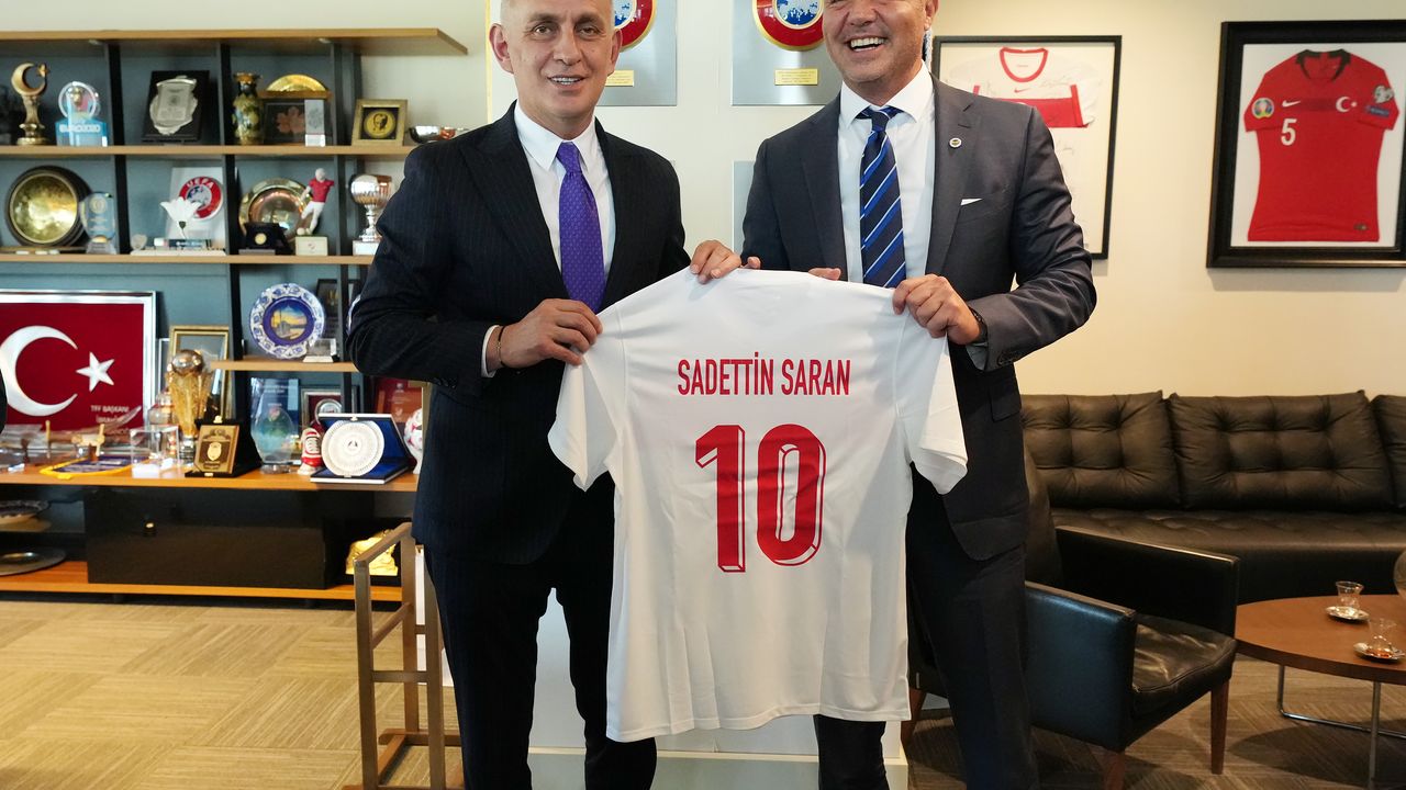 Riva Hasan Doğan Millî Takımlar Kamp ve Eğitim Tesisleri'nde gerçekleşen ziyaretin sonunda TFF Başkanı İbrahim Ethem Hacıosmanoğlu, Sadettin Saran'a A Millî Takım forması takdim ederken, Saran da kendisine plaket ve Fenerbahçe forması hediye etti.