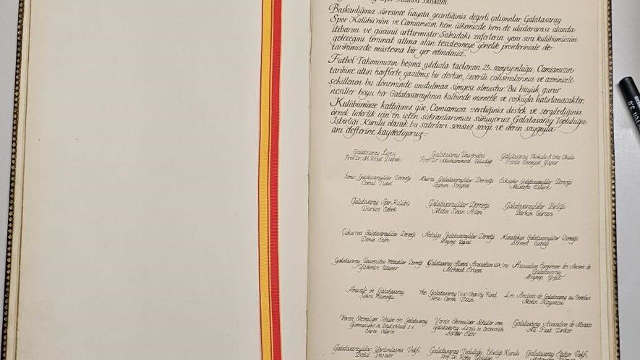 Serhan TÜRK/İSTANBUL, (DHA) – GALATASARAY Topluluğu İşbirliği Kurulu’nun ortak önerisiyle Galatasaray Lisesi anı defterine Başkan Dursun Aydın Özbek’e hitaben yazılan bir teşekkür yazısı hazırlandı.