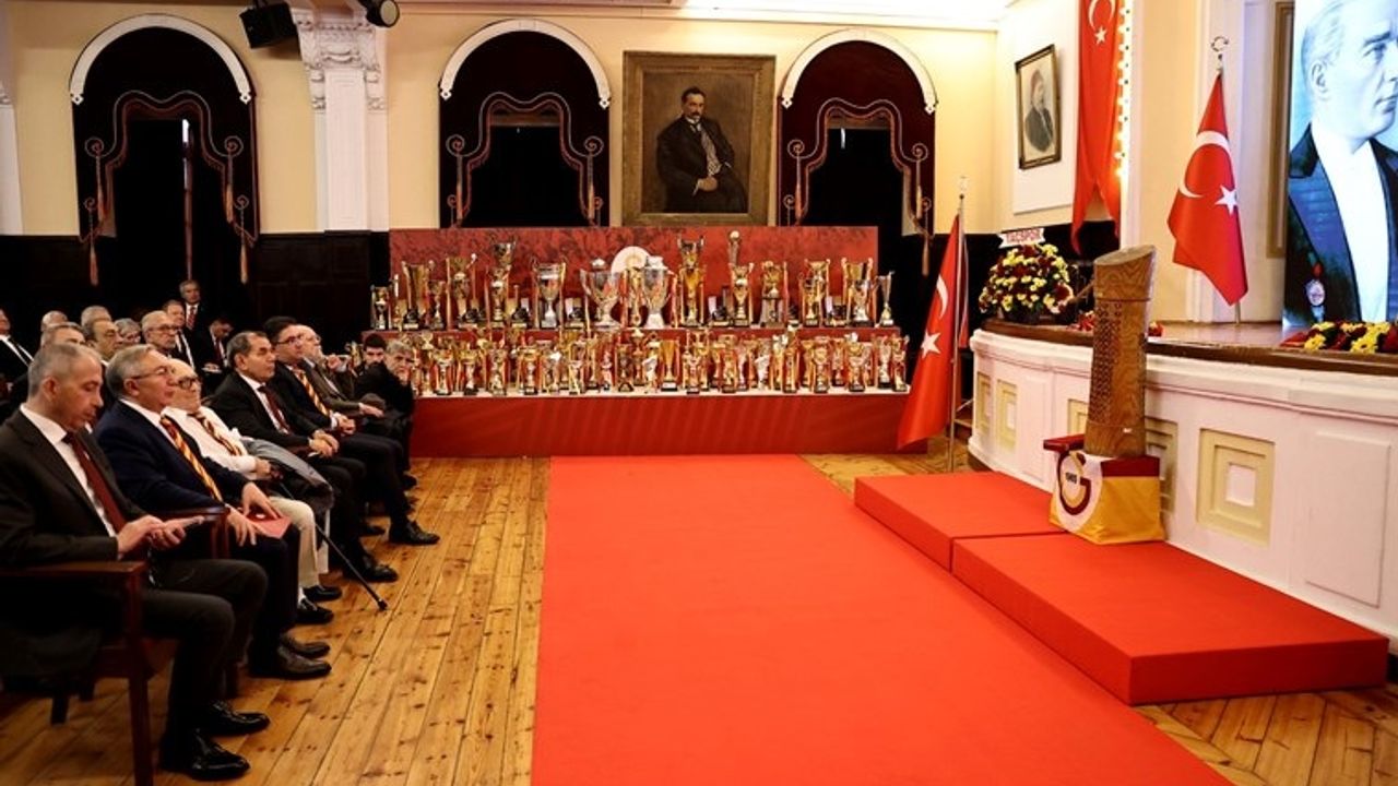 Taksim Cumhuriyet Anıtı’na çelenk bırakılmasının ardından Galatasaray Lisesi’ne geçildi ve 2024-2025 yılında kazanılan sportif başarıların kupalarının sergilendiği Tevfik Fikret Salonu’nda saygı duruşu ve İstiklal Marşı sonrasında Başkan Dursun Aydın Özbek kürsüye çıkarak konuşmasını yaptı.