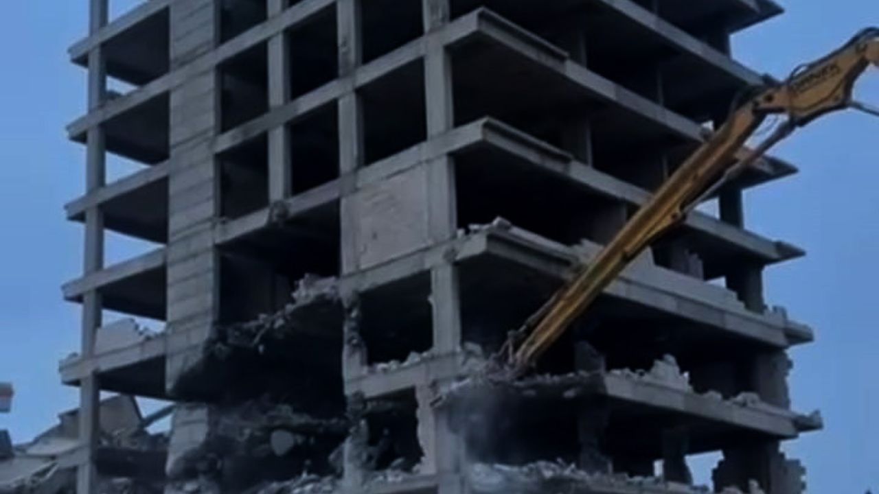 Kahramanmaraş merkezli depremlerden etkilenen Nurdağı ilçesinde, Çevre, Şehircilik ve İklim Değişikliği Bakanlığı ekipleri tarafından yapılan incelemede inşaat halindeki binanın az hasarlı olduğu tespit edildi. Yıkım kararı verilmesinin ardından Atatürk Mahallesi'ndeki 8 katlı apartman için ekipler çalışma başlattı. İş makineleriyle yapılan kontrollü yıkım sırasında bina aniden çöktü. Çevreyi toz bulutu kaplarken, binanın büyük bir gürültüyle çökmesi ise vatandaşlar tarafından cep telefonu kamerasıyla kaydedildi. (DHA)