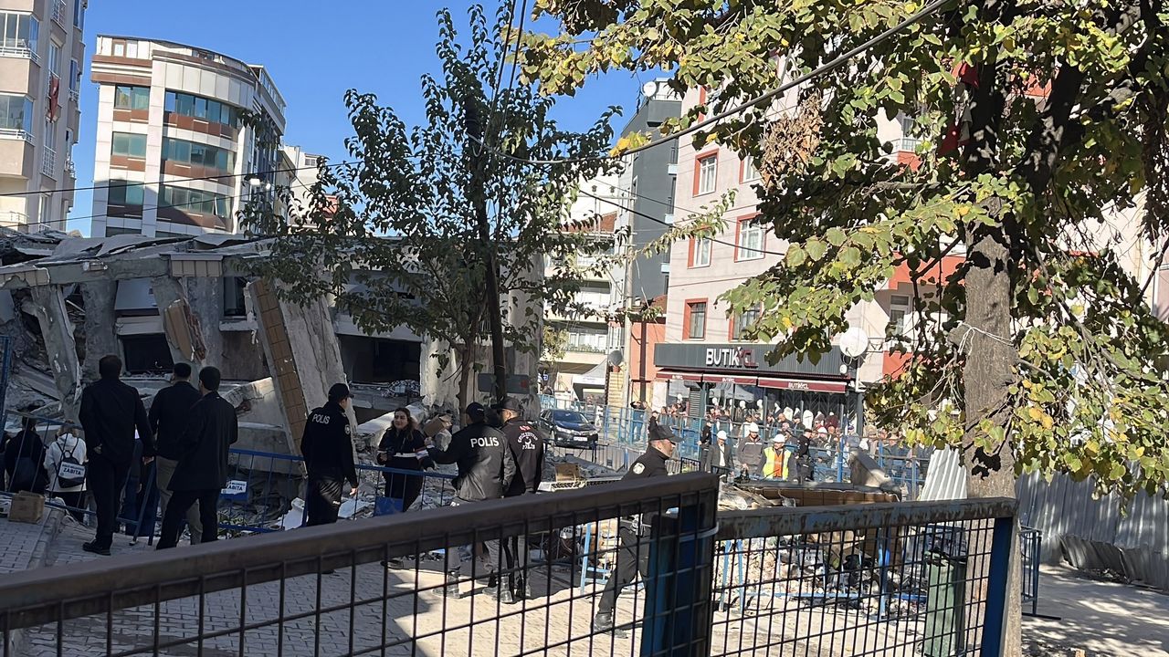Kocaeli’nin Gebze ilçesinde dün çöken aynı aileden 4 kişinin öldüğü, 1 kişinin yaralı kurtarıldığı 7 katlı binanın enkazında Gebze Cumhuriyet Başsavcılığı tarafından görevlendirilen savcılardan oluşan heyet, incelemelere başladı. Heyet, güvenlik amacıyla etrafı demir bariyerlere kapatılan enkazda çalışmalarını sürdürüyor. (DHA)