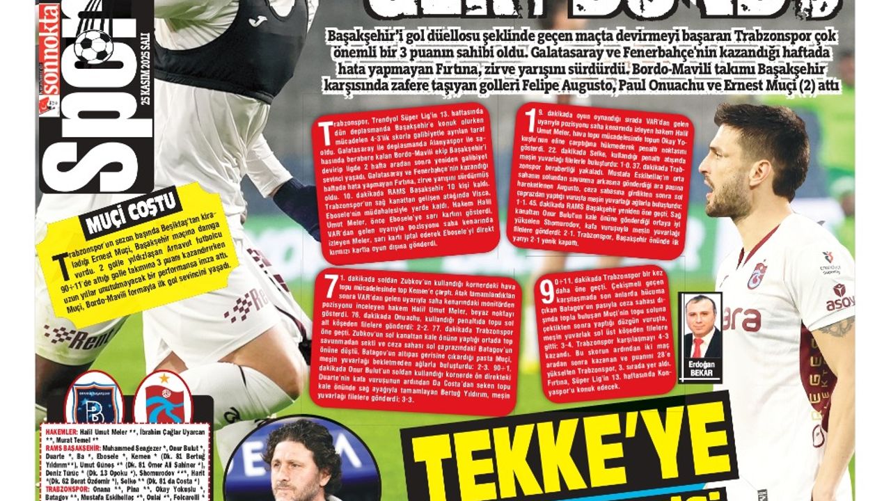 Öte yandan Trabzon’da yayın yapan yerel gazeteler de Trabzonspor’un RAMS Başakşehir FK karşısında elde ettiği galibiyeti manşetlerine farklı başlıklarla taşıdı. Trabzon yerel basın manşetleri şu şekilde: