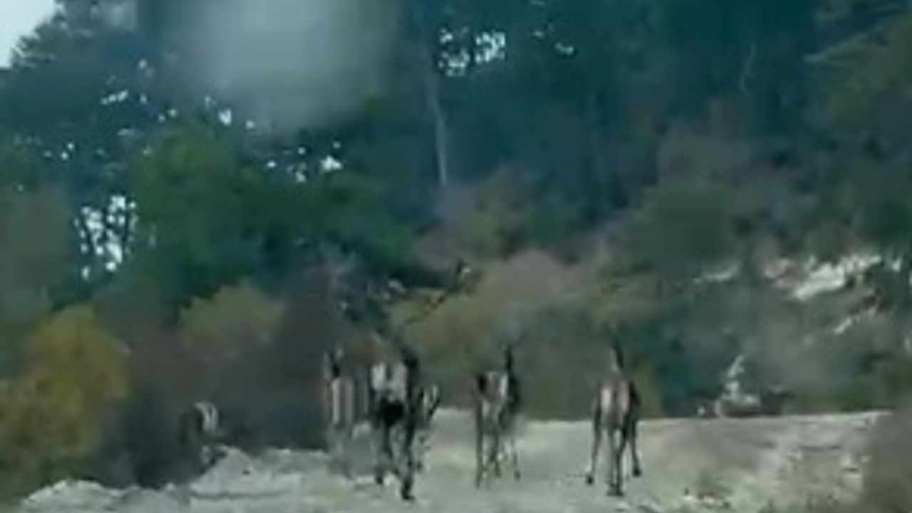 Zübeyde ÖZMEN/GÖYNÜK, (Bolu), (DHA)- BOLU’nun Göynük ilçesinde orman yoluna inen geyik sürüsü, bölgeden geçen sürücünün cep telefonu kamerasına yansıdı.