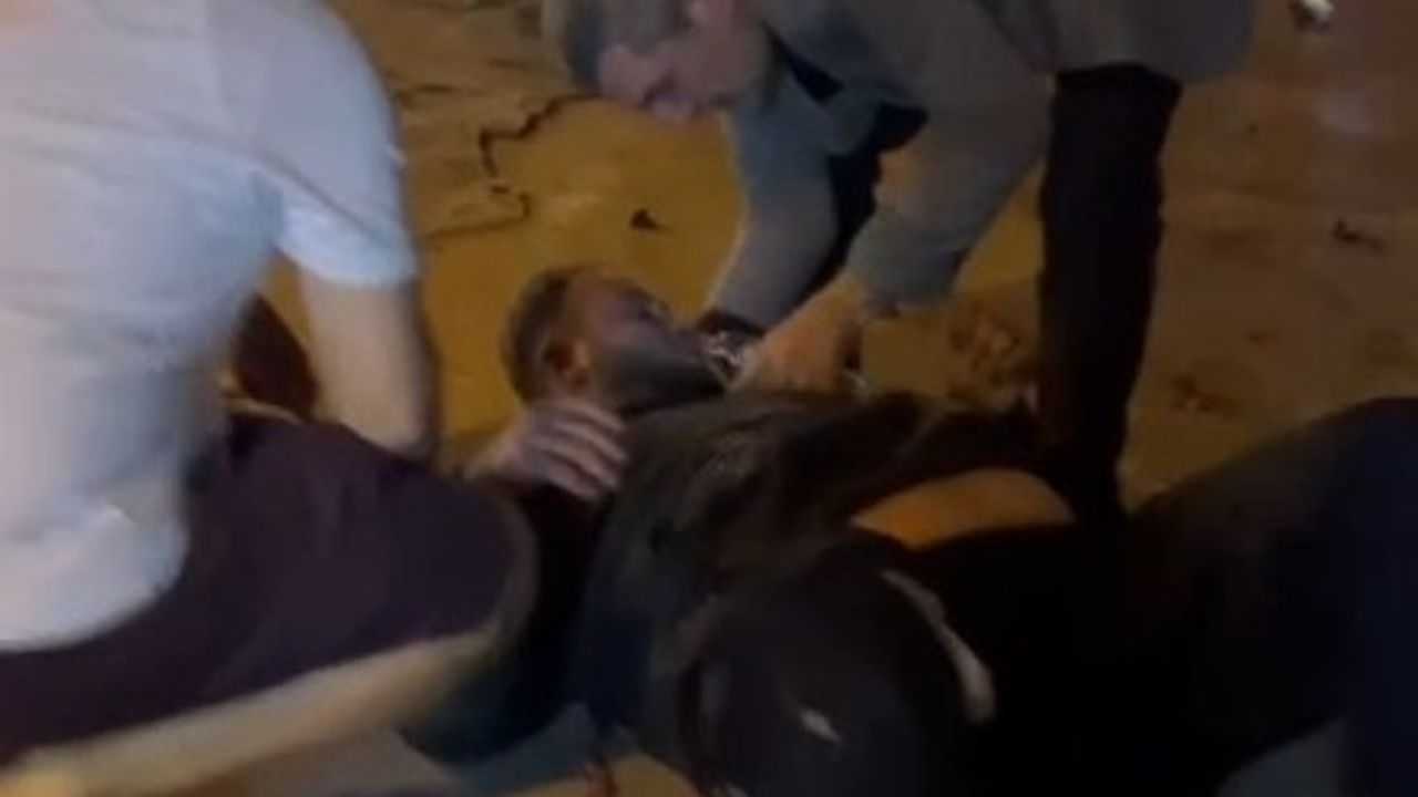 Hafif ticari araç sürücüsü Y.K. gözaltına alınırken, kaza bir iş yerinin güvenlik kamerasına yansıdı. (DHA)