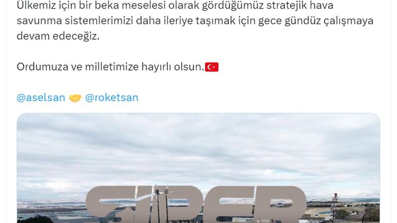 ASELSAN Genel Müdürü Ahmet Akyol da, sanal medya hesabında, Siper batarya teslimatı kabul atışından fotoğraf paylaşarak, 'Seri üretim SİPER gücünü kanıtlamayı sürdürüyor. Ülkemiz için bir beka meselesi olarak gördüğümüz stratejik hava savunma sistemlerimizi daha ileriye taşımak için gece gündüz çalışmaya devam edeceğiz. Ordumuza ve milletimize hayırlı olsun' dedi. (DHA)