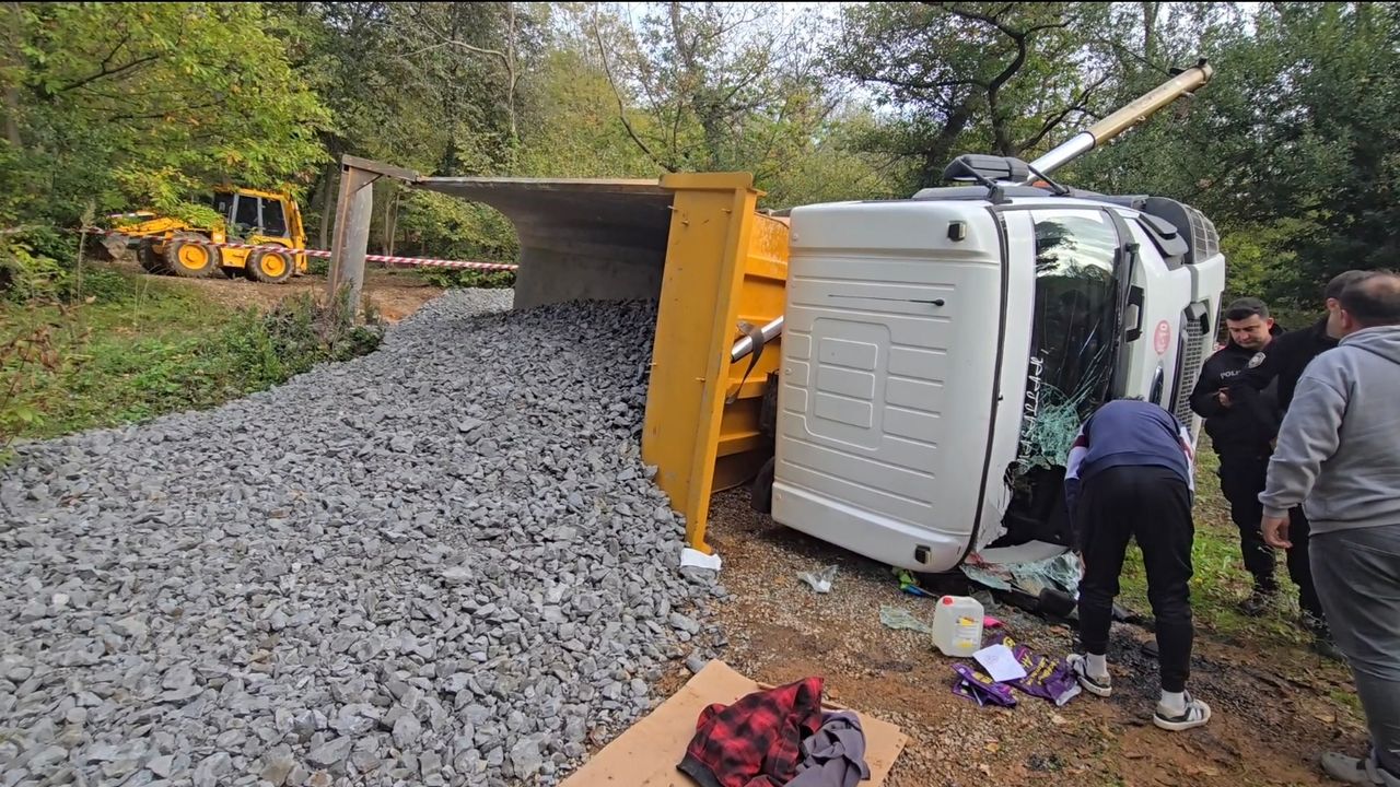 Mert ORDU/İSTANBUL (DHA) – BEYKOZ'da toprak yolda ilerleyen mıcır yüklü kamyon sürücüsünün direksiyon hakimiyetini kaybetmesi sonucu devrildi. Kazada kamyon sürücüsü yaralandı.