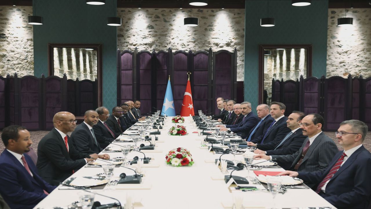 İSTANBUL,(DHA)-CUMHURBAŞKANI Recep Tayyip Erdoğan, davetine icabetle Türkiye'ye gelen Somali Cumhurbaşkanı Hasan Şeyh Mahmud ile Cumhurbaşkanlığı Dolmabahçe Ofisi'nde heyetler arası görüşme gerçekleştirdi. (DHA)