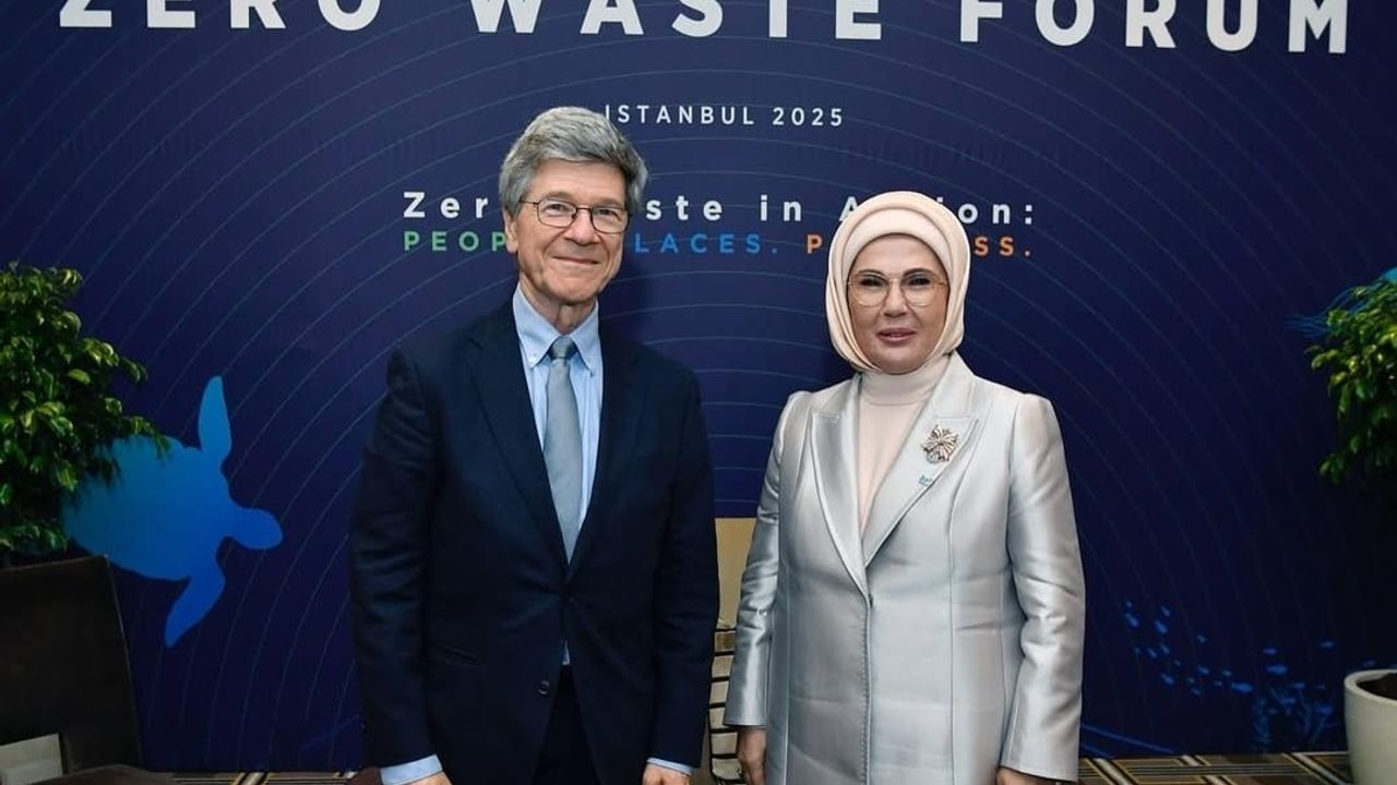 Uluslararası Sıfır Atık Forumu kapsamında, Cumhurbaşkanı Recep Tayyip Erdoğan'ın eşi ve Sıfır Atık Vakfı Onursal Başkanı Emine Erdoğan, Birleşmiş Milletler (BM) Sürdürülebilir Kalkınma Çözümleri Ağı Başkanı Prof. Jeffrey Sachs ile bir araya geldi. İstanbul'da 'Sıfır Atık Hareketi: İnsan, Mekan, Dönüşüm' temasıyla düzenlenen Uluslararası Sıfır Atık Forumu'nun ardından yapılan görüşmeye Dışişleri Bakan Yardımcısı Nuh Yılmaz ve Maarif Vakfı Başkanı Mesut Özdil de katıldı. Görüşmede Birleşmiş Milletler (BM) Sürdürülebilir Kalkınma Çözümleri Ağı Başkanı Prof. Jeffrey Sachs, Gazze barışında Türkiye'nin destek, katkıları ve liderliği için teşekkür etti. Görüşmenin ardından Maarif Vakfı ile Jeffrey Sachs'ın başkanı olduğu Sürdürülebilir Kalkınma Çözümleri Ağı arasında küresel eğitim konusunda işbirliği anlaşması imzalandı.