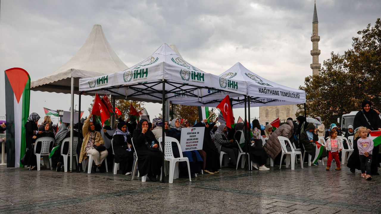 Eminönü’nde her gün 24 saat düzenlenen eyleme destek verme çağrısı yapan Yıldırım, “Pazar günü öğlen namazının ardından Ayasofya Meydanı’ndan Eminönü Meydanı’na kadar yürüyüş yapılacak. Şu bir milyon insanı bir toplayın ülke olarak. Ben halkı halka şikayet ediyorum. Ankara’da da aynı saatlerde ve Türkiye’nin tüm illerinde bu eylemler yapılacak. Hepinizden destek bekliyoruz. Sumud Filosu’nda şunu öğrendik, İsrail’in müdahale kapasitesi açığa çıktı. Yani 100-150 tane gemi göndersek bir kısmı içeri girecekmiş” diye konuştu.