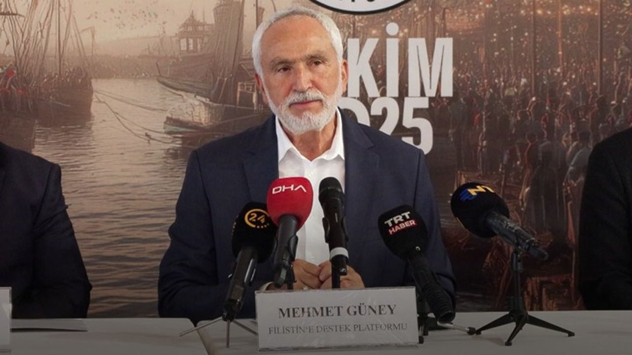 Mehmet Güney, "Bundan sonra 7 Ekim 2023 de başlayan bu kıyam bugün itibariyle bu gün itibariyle iki yılını doldurdu ve bizde Filistin Destek Platformunun paydaşları olarak bu kardeşlerimizin direnişlerine sahip çıkalım diye inşallah 5 Ekim Pazar günü Ayasofya Camii Meydanı'ndan başlayıp saat 13:00’da Ayasofya Meydanından başlayıp Eminönü Meydanı'na kadar yürüyeceğiz ve burada ayak seslerimiz Tel Aviv’den duyulsun istiyoruz. Burada kardeşlerimize verdiğimiz destekte aynı zaman da kassam tugaylarının yüreğinde de hissedilsin istiyoruz. Aynı zamanda deniz vasıtalarıyla birlikte gerek haliç tarafından gerek boğazdan gelen deniz vasıtalarıyla birlikte Eminönü’nde hem Sumud filosunu anımsatabilecek deniz vasıtalarımız hem de karadan yürüyüşümüzle birlikte Eminönü meydanında inşallah 5 Ekim 2025 itibariyle saat 13:00’dan sonra ben tüm İstanbul’daki kardeşlerimizi bu kutlu eyleme davet etmek istiyorum. Bu eylem sadece İstanbul ile sınırlı kalmayacak İstanbul’un yanı sıra Ankara başta olmak üzere aynı gün Türkiye’nin 81 ilinde kardeşlerimiz basın toplantılarıyla yürüyüşlerle eylemlerle dualarla değişik etkinliklerle birlikte bunun anısına inşallah bu hayırlı hizmetlerini yapacaklar. 5 Ekim Pazar günü herkes bulunduğu ilde inşallah bu duyarlılığın paydaşı olsun" dedi. (DHA)