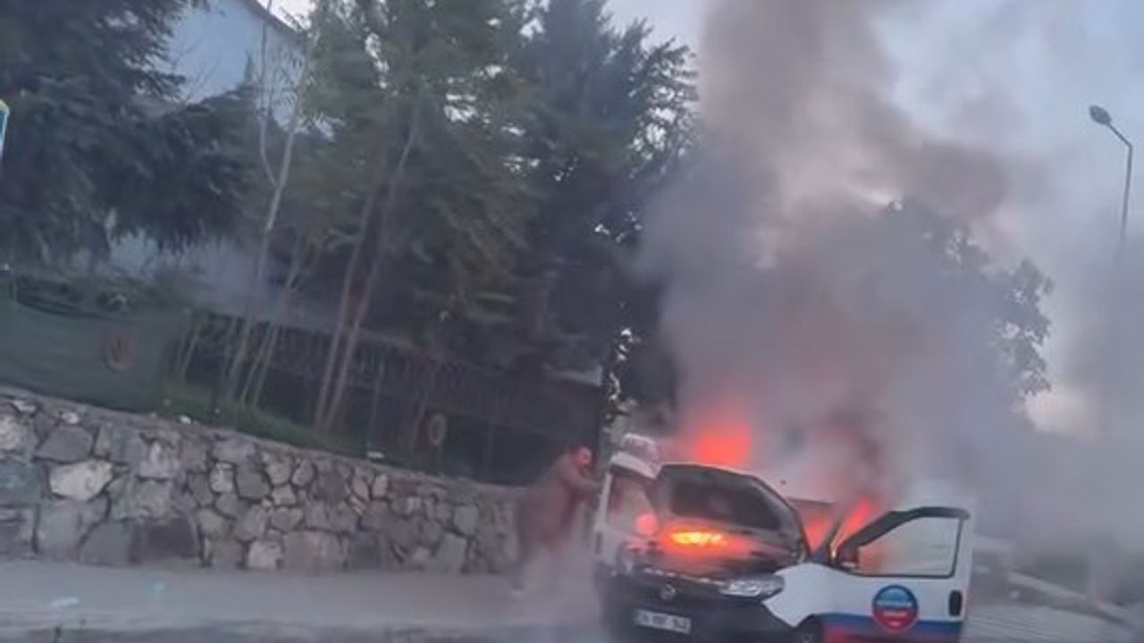 Doğan Can CESUR / İSTANBUL, (DHA)- KAĞITHANE'de hareket halindeki hafif ticari araç henüz belirlenemeyen bir nedenle alev alev yandı. Sürücü, alevlere yangın söndürme tüpüyle müdahale etse de başarılı olamadı. O anlar cep telefonu ile görüntülendi.