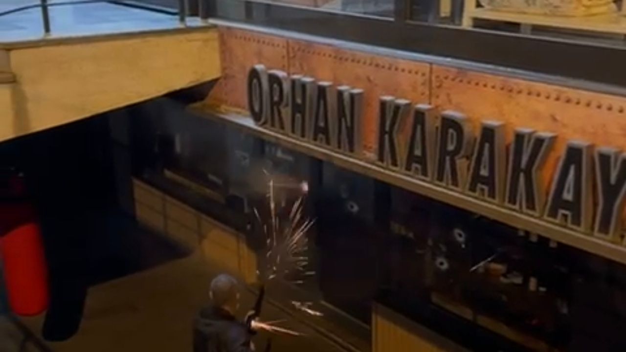 O.K.'nin pompalı tüfekle iş yerine ateş ettiği anlar cep telefonu kamerasına yansıdı. Görüntülerde O.K.'nin çevredekilerin 'Abi yapma' uyarılarına aldırış etmeden iş yerine defalarca ateş ettiği görülüyor. (DHA)