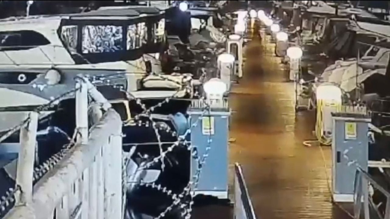 Güvenlik kamerasına yansıyan görüntülerde Teknenin açılması, bir anda durması ve geri dönmesi yer aldı.