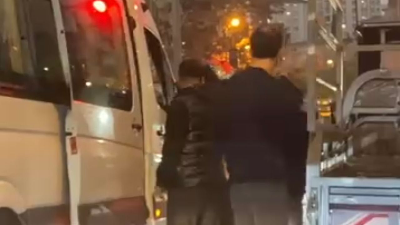 Kavga anı başka bir sürücü tarafından cep telefonu ile kaydedildi. Görüntülerde, çıkan tartışmanın kısa sürede büyümesinin ardından servis şoförünün kağıt toplayan kişiye yumrukla saldırdığı ve çevredeki kişilerin tarafları ayırmaya çalıştığı anlar yer aldı. (DHA)