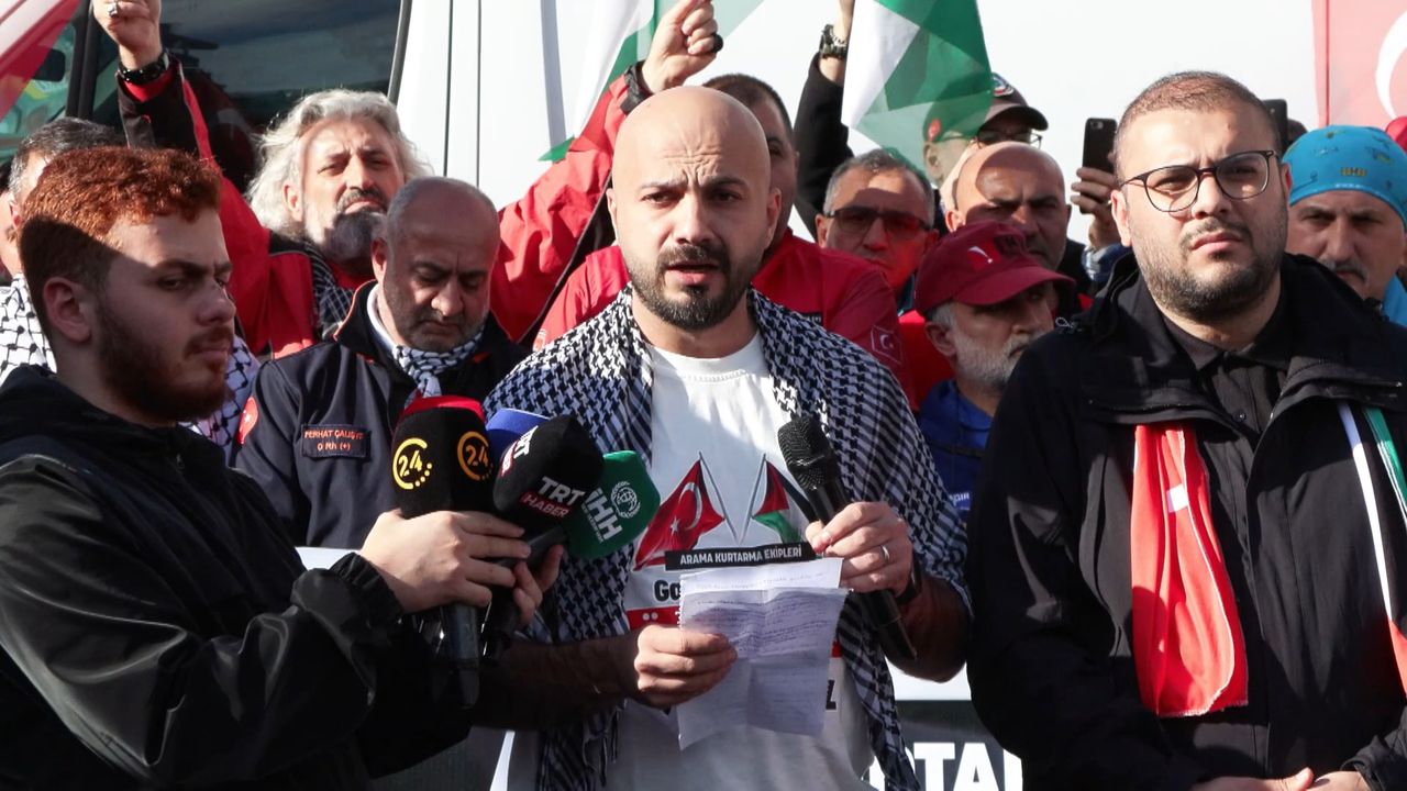 Gülseren KARAPINAR-Emir BENLİOĞLU/İSTANBUL,(DHA)- GAZZE’ye yönelik saldırılara dikkat çekme amacıyla 'Arama Kurtarma Ekipleri' tarafından Yenikapı Etkinlik Alanı'ndan İsrail Konsolosluğu'na 'Gazze'ye Özgürlük Konvoyu' düzenlendi. İsrail Konsolosluğu önünde açıklamalarda bulunan BÜDAK Arama Kurtarma üyesi akademisyen Kadir Şeker, "Tüm faaliyetlerimiz, uluslararası hukuk, güvenlik protokolleri ve ateşkes hükümlerine uygun biçimde yürütülecektir. Dünya ülkeleri, artık sadece kınama açıklamalarıyla yetinmemeli, ateşkesin sürdürülmesi, yardımların girişi ve işgalin sona ermesi için bütün imkanlarını seferber etmelidir" şeklinde konuştu.