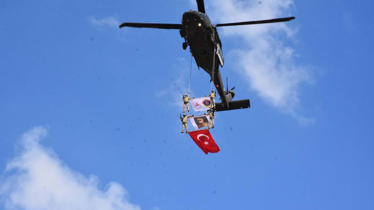 Nevra UÇKAÇ/İZMİR, (DHA)- İZMİR Foça'daki Jandarma Albay M. Remzi Kızılsu Atış Alanı'nda gerçekleştirilen Boran 7 Uluslararası Keskin Nişancı Yarışması seçkin gözlemci gününde helikopterden keskin nişancı atışları ve çelik kanatlar uçuş gösterileri gerçekleştirildi.