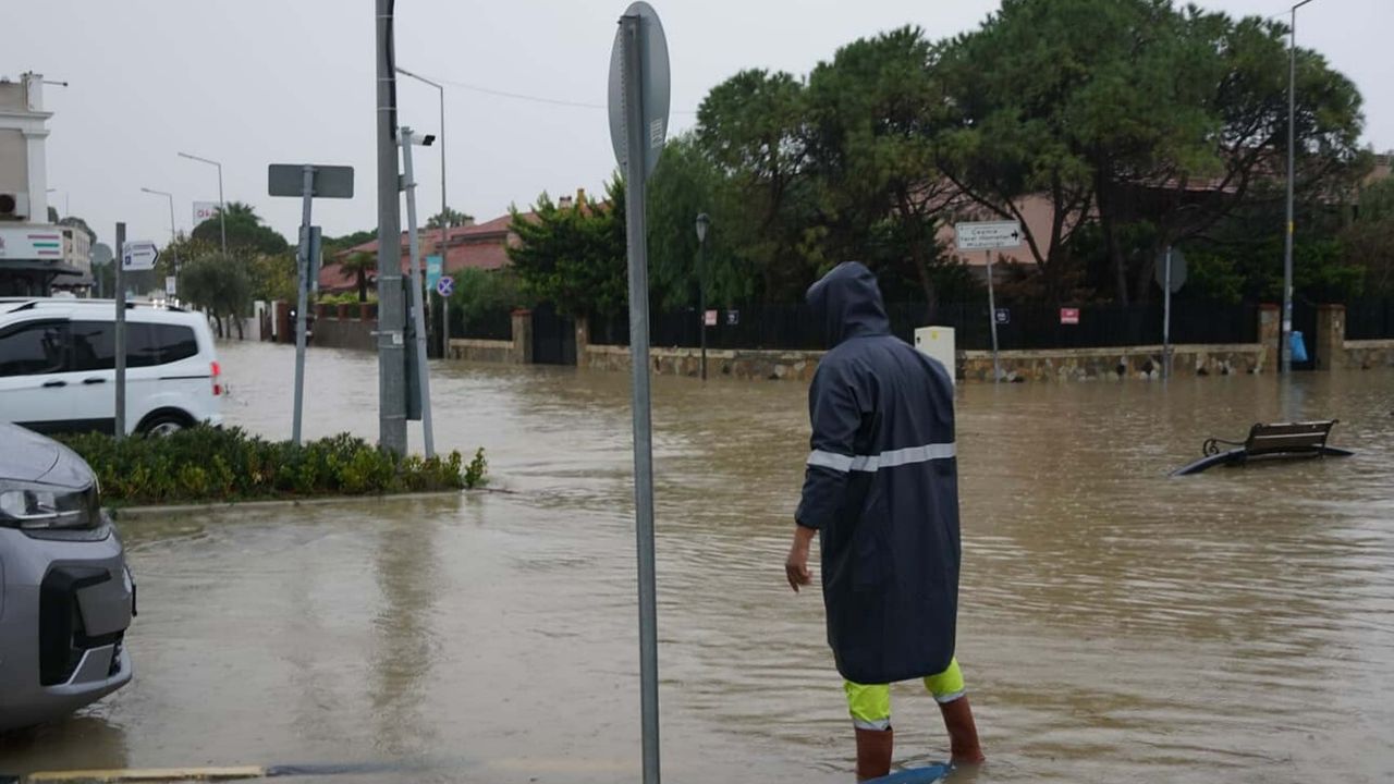 İzmir'in Çeşme ilçesinde sağanak nedeniyle göle dönen cadde ve sokaklar, dronla görüntülendi. Öte yandan bazı ev ve iş yerlerini su bastı. İzmir Büyükşehir Belediyesi ekipleri, bölgedeki suyu tahliye etmek için vidanjörlerle çalışma başlattı. Esnaf ve bölge halkı da suyla dolan ev ve iş yerlerindeki suyu kendi imkanlarıyla tahliye etmeye çalışıyor.