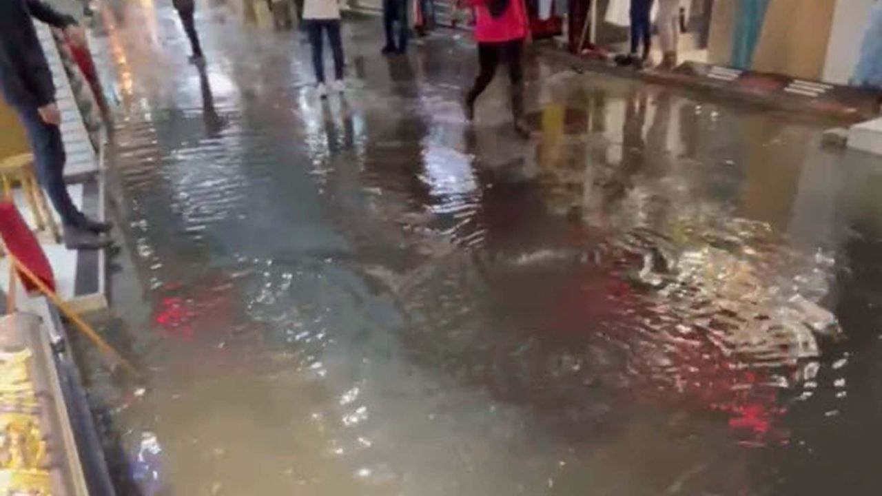 İzmir'de etkili olan sağanak nedeniyle kentin birçok noktasında olumsuzluk yaşandı. Tarihi Kemeraltı Çarşısı'ndaki bazı işletmeleri su bastı. Esnaf kendi imkanlarıyla suyu tahliye etti. (DHA)