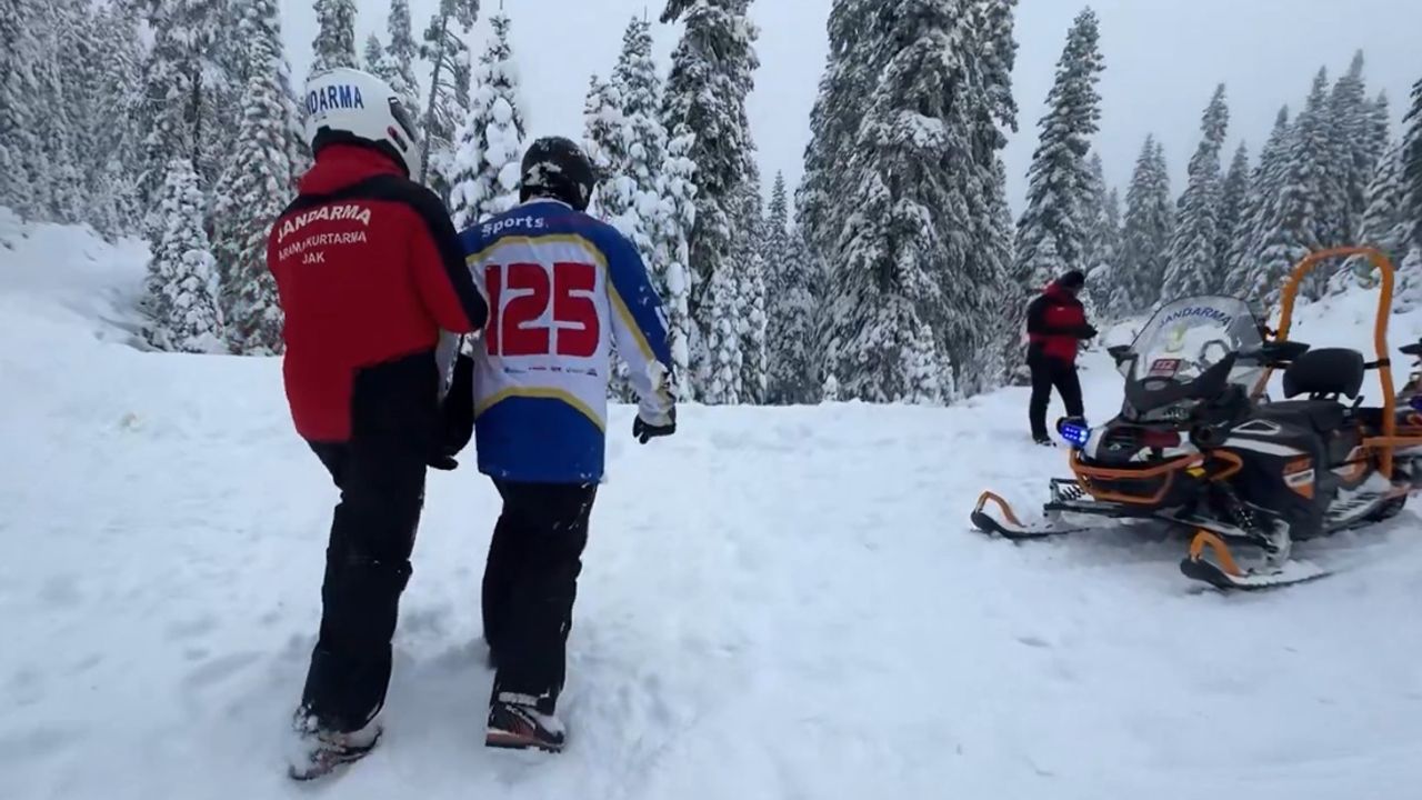 Mutlu YUCA/ BOLU, (DHA)- BOLU'da kayak merkezi Kartalkaya'da görev yapan Jandarma Arama Kurtarma (JAK) timleri kayak yapmak için girdikleri ormanda düşüp, kar altında mahsur kalan kayakçıyı kurtarma tatbikatı yaptı. Kar motorları ve özel eğitimli köpekle bölgeye giden ekipler, kayakçıyı kurtardı.