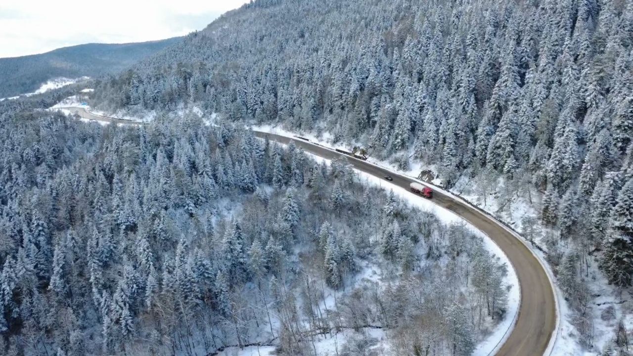 Kentin yüksek kesimlerinde gece saatlerinde kar etkili oldu. Yağışın ardından Karabük-Bartın kara yolunun 1030 rakımlı Ahmet Usta mevkisinde sürücüler, araçlarıyla yavaş ilerlemek zorunda kaldı. Yağışın ardından ormanlar da karla kaplandı. Beyaza bürünen çam ormanlarının manzarası, dronla görüntülendi. (DHA)