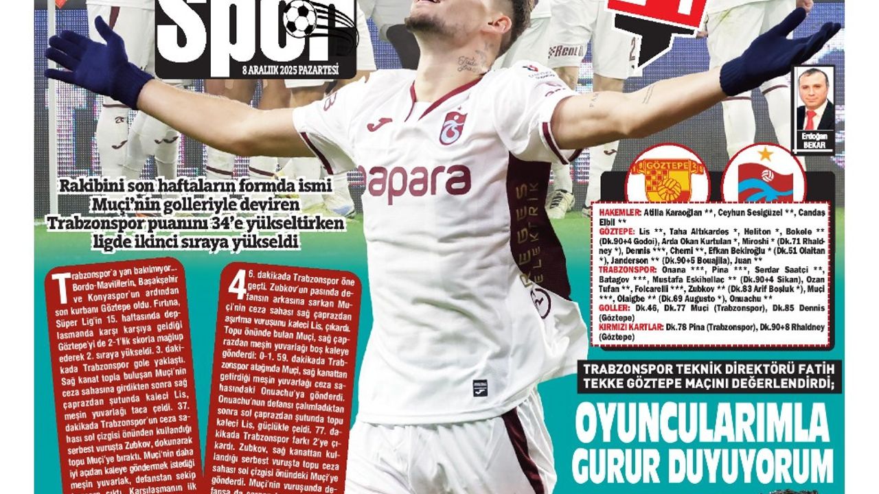 Trabzon’da yayın yapan yerel gazeteler de Göztepe karşısında deplasmanda alınan galibiyeti manşetlerine farklı başlıklarla taşıdı. Manşetlerde Muçi’nin performansı ön plana çıktı. Yerel basında öne çıkan başlıklar şu şekilde: