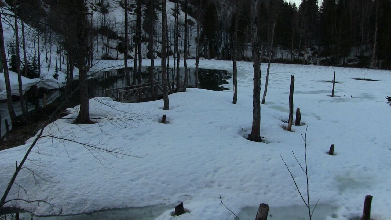 Borçka ilçesine 27 kilometre mesafede, Karçal Dağları'nın kuzeybatısında deniz seviyesinden 1550 metre yükseklikte yer alan Karagöl, eşsiz doğasıyla ziyaretçilerini ağırlıyor. Bozulmamış doğası, yürüyüş parkurları ve kamp alanlarıyla doğa tutkunlarının vazgeçilmez adreslerinden olan Karagöl'de, etkili kar yağışı sonrası özellikle geceleri hava sıcaklığının sıfırın altına düşmesiyle göl yüzeyi kısmen buz tuttu. Donan göl yüzeyi ve ormanları kaplayan kar örtüsüyle seyrine doyumsuz manzaralar oluştu. Buz tutan gölü ziyaret edenler manzaranın keyfini çıkardı. Göl ve çevresi dronla görüntülendi. (DHA)