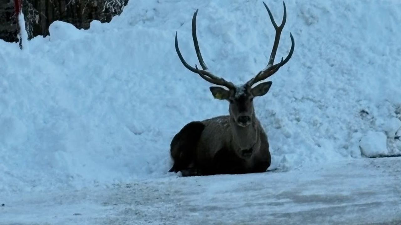 Selda Hatun TAN/KARTEPE (Kocaeli), (DHA)- KOCAELİ'nin Kartepe ilçesinde doğaya bırakılan kızılgeyiklerden birinin karla kaplanan Kuzu Yayla Tabiat Parkı'nda yürüdüğü anlar, cep telefonu kamerasıyla kaydedildi.