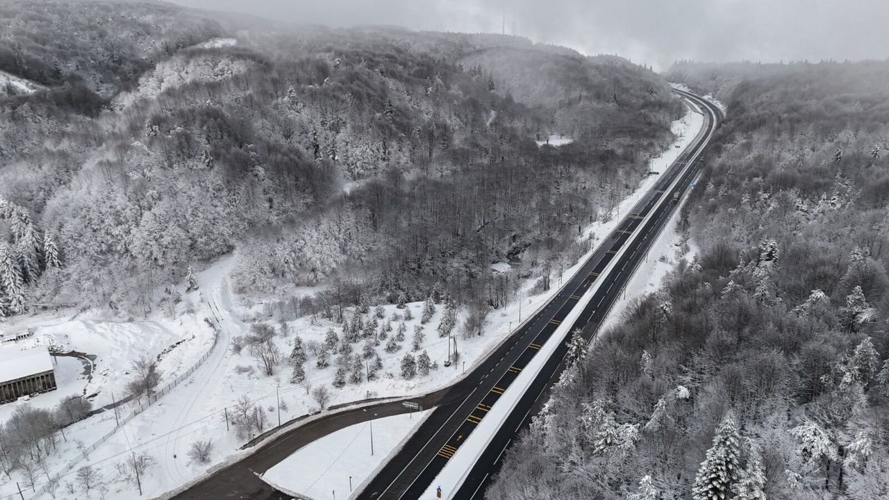 Ankara ile İstanbul arasındaki önemli geçiş güzergahı Bolu Dağı'nda iki gündür kar yağışı aralıklarla etkili oldu. Kar yağışının ardından yeşil alanlar, beyaz örtüyle kaplandı. Bolu Dağı'nda kar kalınlığı da yeşil alanlarda yaklaşık 10 santime ulaştı. Kar yağışı ile birlikte Karayolları ekiplerinin çalışması sonucu Bolu Dağı'nda ulaşımda aksama yaşanmadı. Karla kaplı Bolu Dağı, dron ile havadan görüntülendi. (DHA)