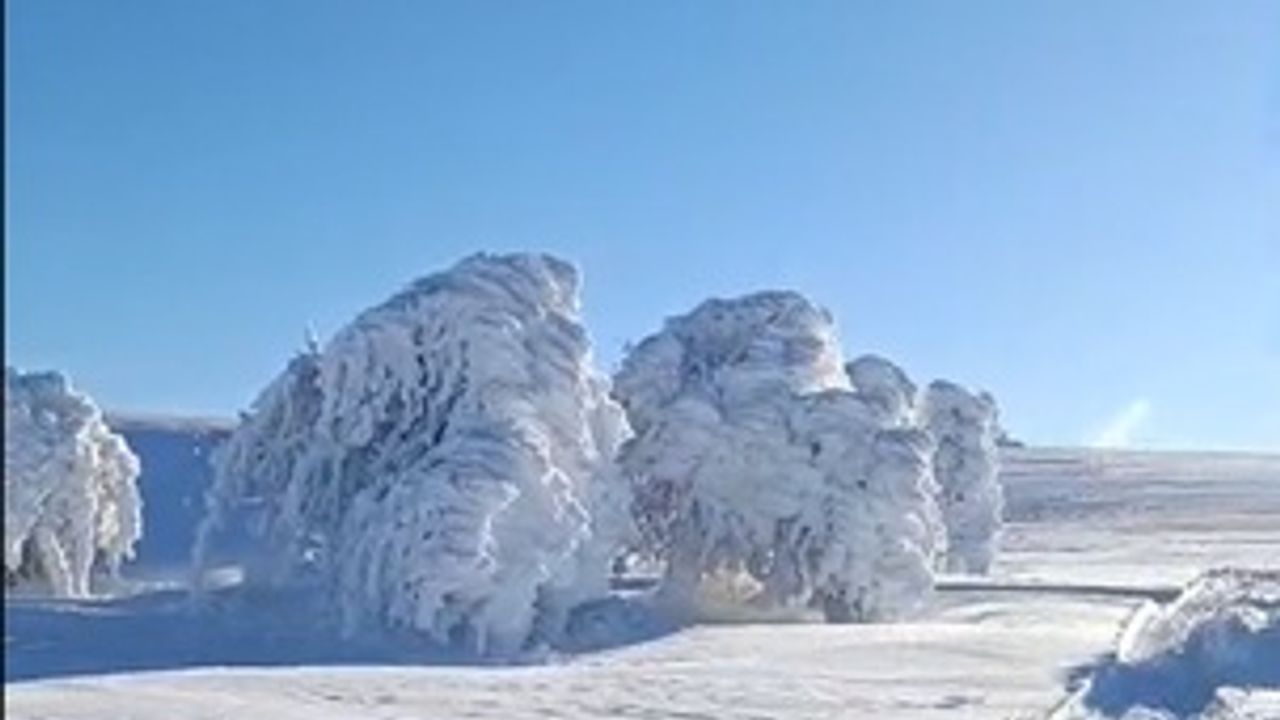 Hızır İlyas YILDIRIM/MUDURNU (Bolu), (DHA)- BOLU'nun Mudurnu ilçesinde yüksek kesimindeki Susuz Yaylası'nda etkili olan soğuk hava nedeniyle ağaçlar buz tuttu.