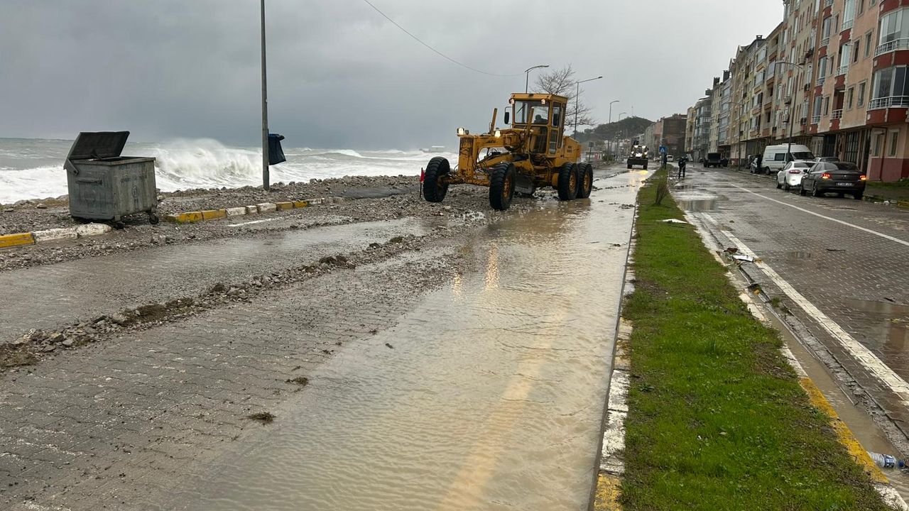 Öte yandan, İnebolu ilçesinde de fırtına etkili oldu. Metrelerce yüksekliğe ulaşan dev dalgalar, İsmetpaşa Caddesi üzerinde sahil yoluna kadar ulaştı. Dalgalarla yola kum ve taş birikintileri sürüklenirken, oluşan kirlilik ve tehlike nedeniyle yolun bir şeridi trafiğe kapandı. İnebolu Belediyesi ekipleri, sahil yolunda biriken kum ve taşları temizlemeye çalışıyor. (DHA)
