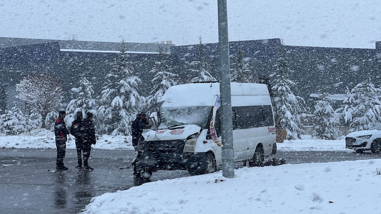 Kaza, saat 14.00 sıralarında Mimarsinan Organize Sanayi Bölgesi 8'inci Cadde'de meydana geldi. Orhan A. idaresindeki 38 P 0097 plakalı işçileri taşıyan minibüs, kar yağışının etkili olduğu bölgede Doğan Ö. hakimiyetindeki 23 HU 061 plakalı TIR'a çarptı. Kazada minibüsteki 11 kişi yaralandı. İhbarla kaza yerine polis, itfaiye ve sağlık ekipleri sevk edildi. Yaralılar, ambulanslarla hastaneye kaldırıldı. Kazaya ilişkin soruşturma başlatıldı. (DHA)