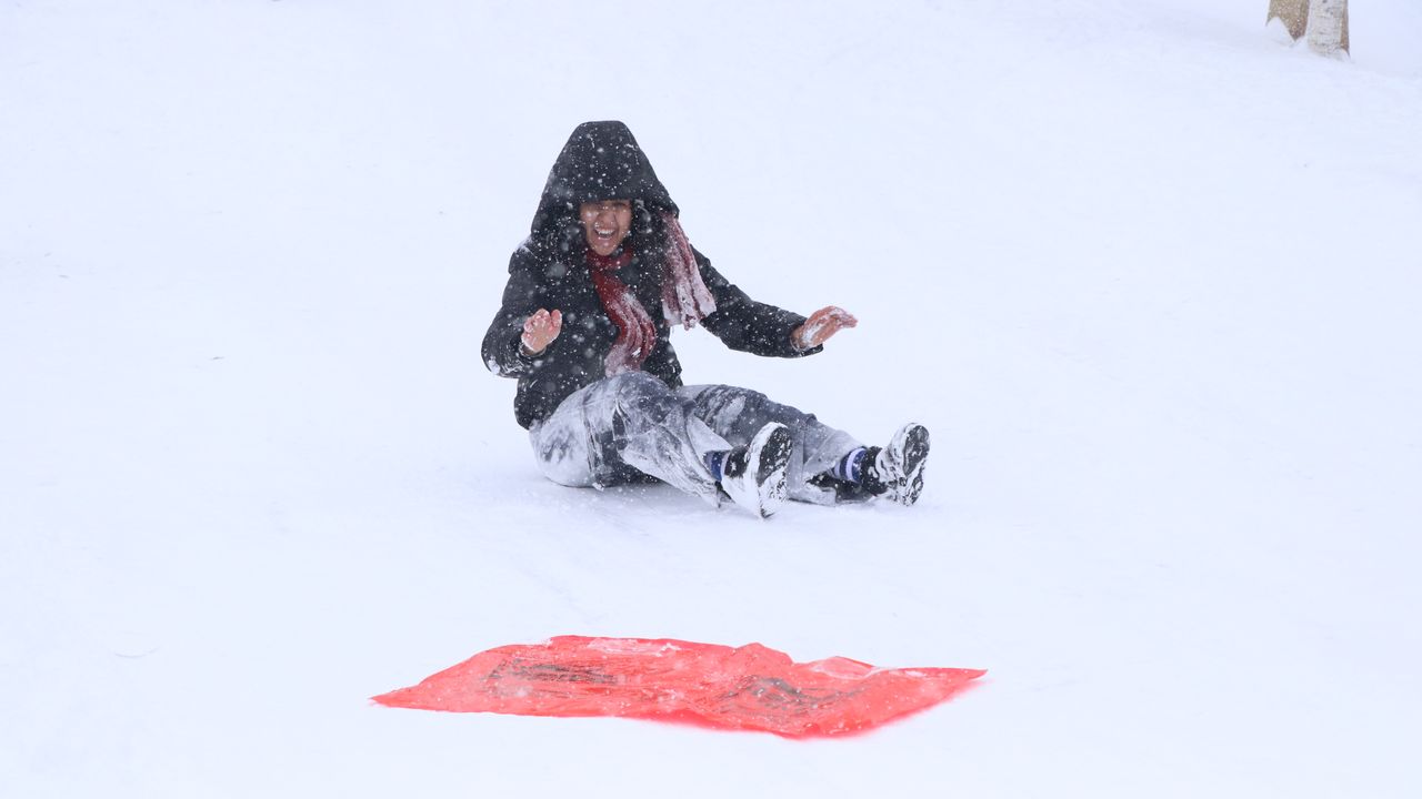 Trabzon'dan gelen Yağız Bıyıklı da 'Mimarlık 1'inci sınıf öğrencisiyim. Trabzon'dan geliyorum. Orada daha fazla oluyor. Kaymaya oradan alışığım. Burası da güzel. Arkadaşım arkadan beni ittiriyor. Ben de poşetlere oturuyorum. Gayet güzel oluyor işe yarıyor' ifadelerini kullandı.