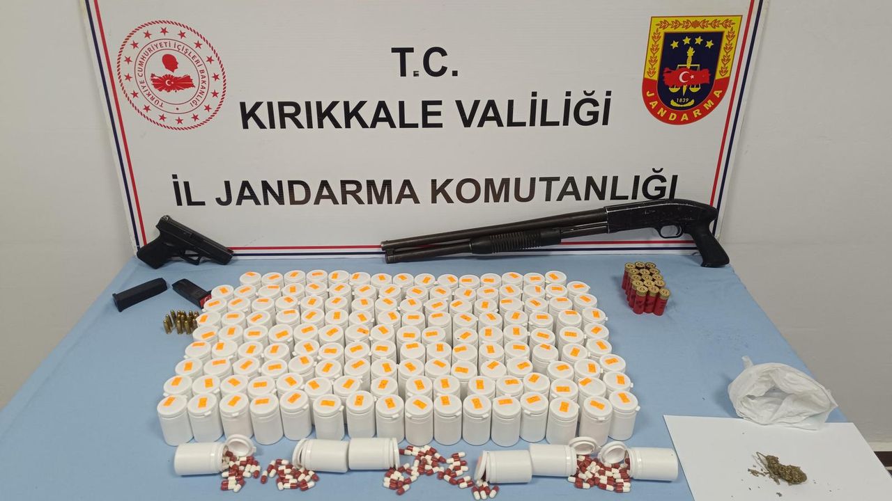 Burak CAN/KIRIKKALE, (DHA)- KIRIKKALE’nin Keskin ilçesinde uyuşturucu ticareti yaptığı tespit edilen şüphelinin ikametine yapılan operasyonda 8 bin 252 uyuşturucu hap, ruhsatsız tabanca ve ruhsatsız pompalı av tüfeği ele geçirildi. Gözaltına alınan M.İ. (52), çıkarıldığı mahkemece tutuklandı.