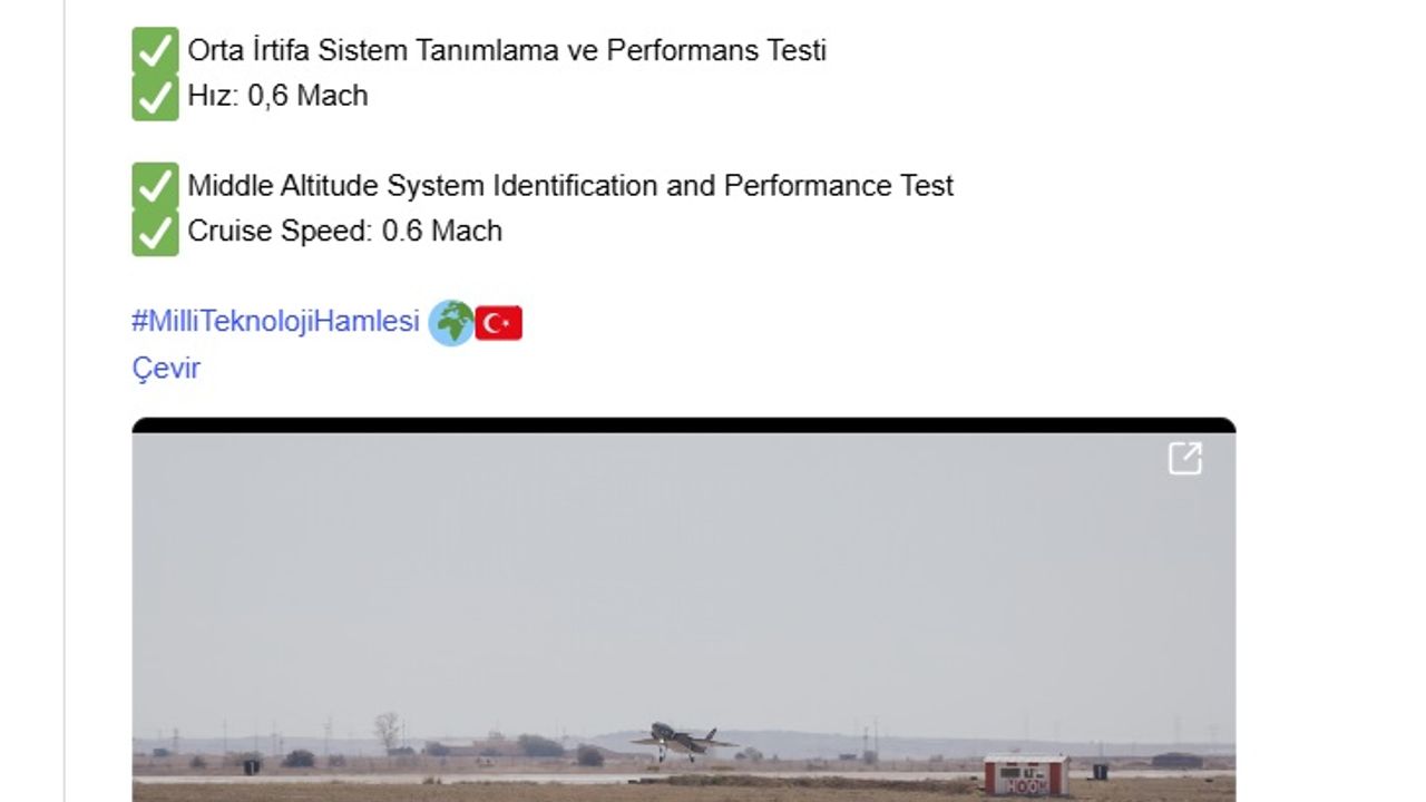 Baykar'ın geliştirdiği insansız savaş uçağı KIZILELMA, test sürecine devam ediyor. Projenin üçüncü prototipi olan PT-3 bu kez orta irtifada yapılan sistem tanımlama ve performans uçuşunu başarıyla tamamladı. Baykar’dan yapılan açıklamaya göre KIZILELMA, 0,6 Mach hızında gerçekleştirdiği denemede tüm performans kriterlerini yerine getirdi. Ayrıca uçuş testi, Bayraktar AKINCI insansız hava aracıyla takip edildi. (DHA)