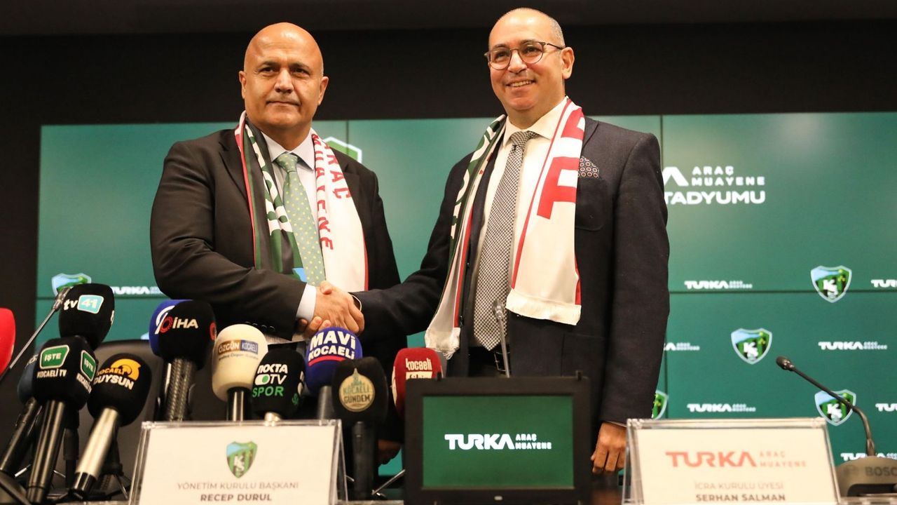 Süper Lig ekiplerinden Kocaelispor, stadyum isim sponsorluğu anlaşması imzaladı. Yapılan anlaşmaya göre yeşil-siyahlı ekip, iç saha maçlarını sezon sonuna kadar Turka Araç Muayene Kocaeli Stadyumu’nda oynanacak. Stadyum isim sponsorluğu için düzenlenen imza törenine Turka İcra Kurulu Üyesi Serhan Salman ve Kocaelispor Kulübü Başkanı Recep Durul katıldı.