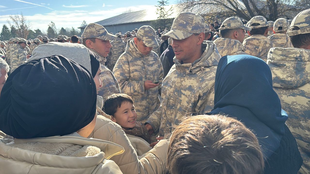 Törenin ardından erler, aileleri ve çocuklarıyla bir araya gelerek özlem giderdi. (DHA)