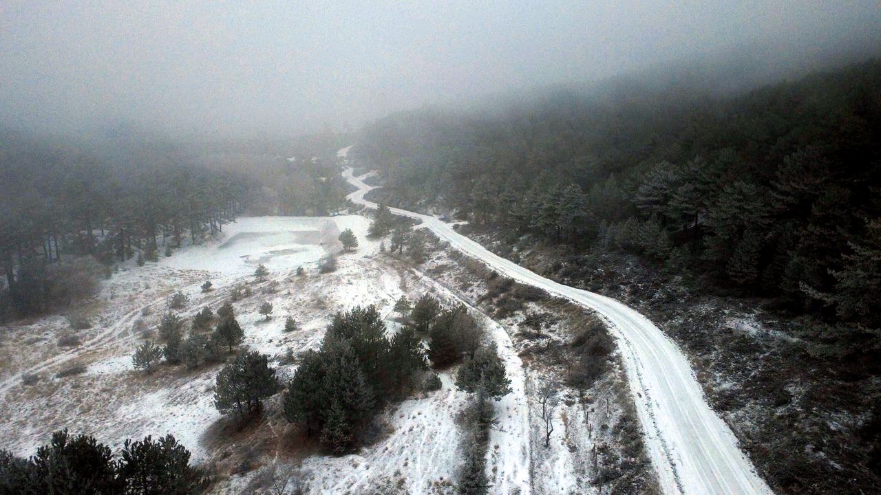 İpek KALAY/DEMİRCİ (Manisa), (DHA)-MANİSA'nın Demirci ilçesinin yüksek kesimlerinde kar yağışı etkili oldu. 1500 rakımlı Başalan Yaylası'nda beyaz örtü ile birlikte oluşan seyirlik manzara, dron ile görüntülendi.
