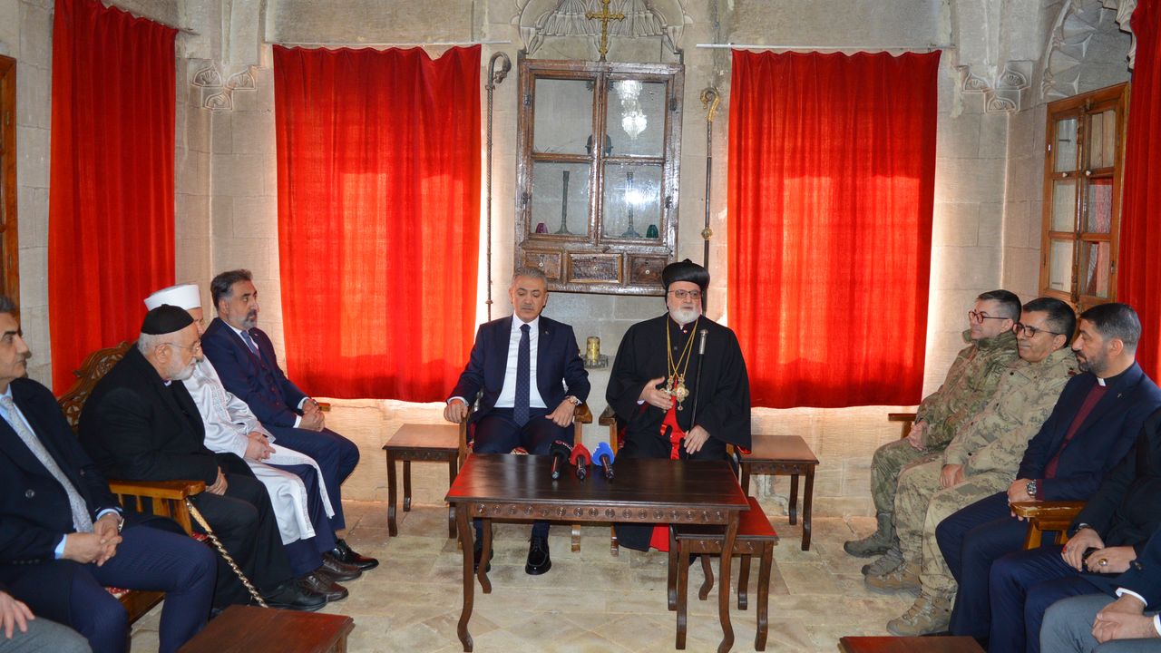 Vali Tuncay Akkoyun ve il protokolü, kilise kabul salonunda Süryanilerin bayramını kutladı. Vali Akkoyun, konuşmasında kentte farklı dinlere mensup insanların yıllardır huzur ve barış içerisinde bir arada yaşadığını ifade ederek, 'Mardin; farklı etnik yapıda, farklı inançta insanları nasıl bir arada kardeşlik içerisinde, huzur içerisinde yaşayabileceğini göstermesi açısından da dünyaya örnek bir şehirdir. Birlikte yaşamanın en güzel örneğidir. Dünyanın Mardin'e ihtiyacı var. Bizler de Mardin'de bu birliği, beraberliği yaşamak, yaşatmak için sürekli bir aradayız. Bugün 'Doğuş Bayramı' vesilesiyle bir araya geldik. Hristiyan kardeşlerimizle Sayın Metropolit başta olmak üzere tebriklerimizi ilettik. Onlarla hasbihal ediyoruz, sohbet ediyoruz. Önümüzde ramazan ayı, 3 aylara girdik. Ramazan ayında da iftar sofralarında Sayın Metropolit ve ilimizde bulunan farklı inançtaki kardeşlerimizle aynı iftar masasında buluşuyoruz. Dolayısıyla bunlar çok önemli. Daha güçlü Türkiye için hem dua ediyoruz, çalışıyoruz, çabalıyoruz. Hepimizin ortak dileği, duası ülkemizin dünyanın en büyük ülkelerinden biri olmasıdır. Bunun için de şunu biliyoruz ki; öncelikle birliğimizi, beraberliğimizi kuvvetlendirmemiz gerekiyor. Özellikle 'Terörsüz Türkiye' sürecinin de bu birliği, beraberliği pekiştirmesi açısından önemli bir fırsat olduğunu biliyoruz. Buna inanıyoruz. Ben bu vesileyle Sayın Metropoliten şahsında tüm Hristiyan kardeşlerimiz 'Doğuş Bayramı'nı tebrik ediyorum. Sağlık, mutluluk, esenlik diliyorum' dedi.