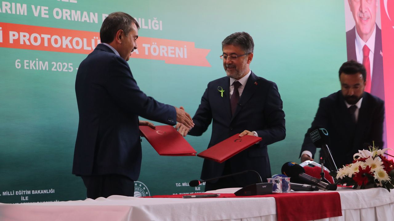 Gizem CENGİL-Emirhan YÜZÜGÜLDÜ/ANKARA, (DHA)- MİLLİ Eğitim Bakanlığı ile Tarım ve Orman Bakanlığı arasında, tarımsal eğitim, yeşil vatanın korunması, su verimliliği, doğa ile yaşam, dijital dönüşüm, okulda çiftlik gibi alanlarda iş birliğini geliştirmek amacıyla çatı protokolü imzalandı.