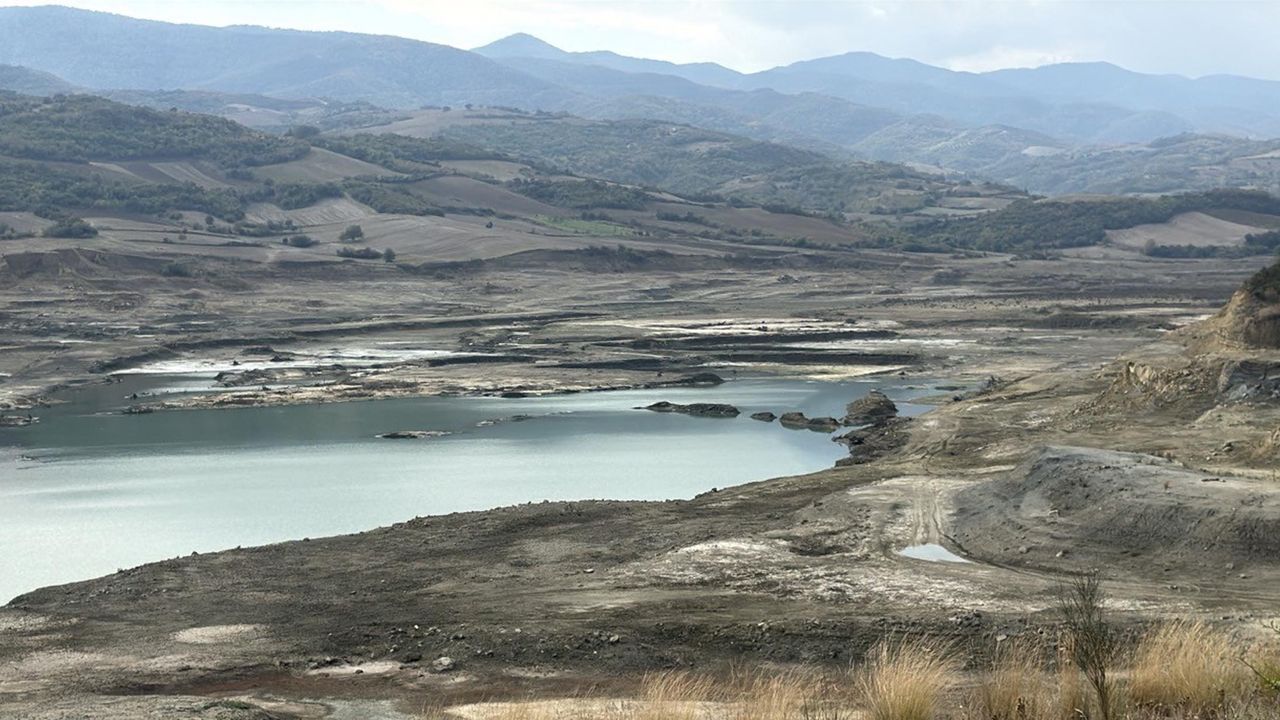 Abdullah YALÇIN/TEKİRDAĞ, (DHA)-TEKİRDAĞ'ın merkez ilçesi Süleymanpaşa'nın su ihtiyacını karşılayan Naip Barajı'nda su seviyesi, yüzde 1'in altına düştü. Kuruma noktasına gelen barajın son hali, dron kamerası ile görüntülendi.