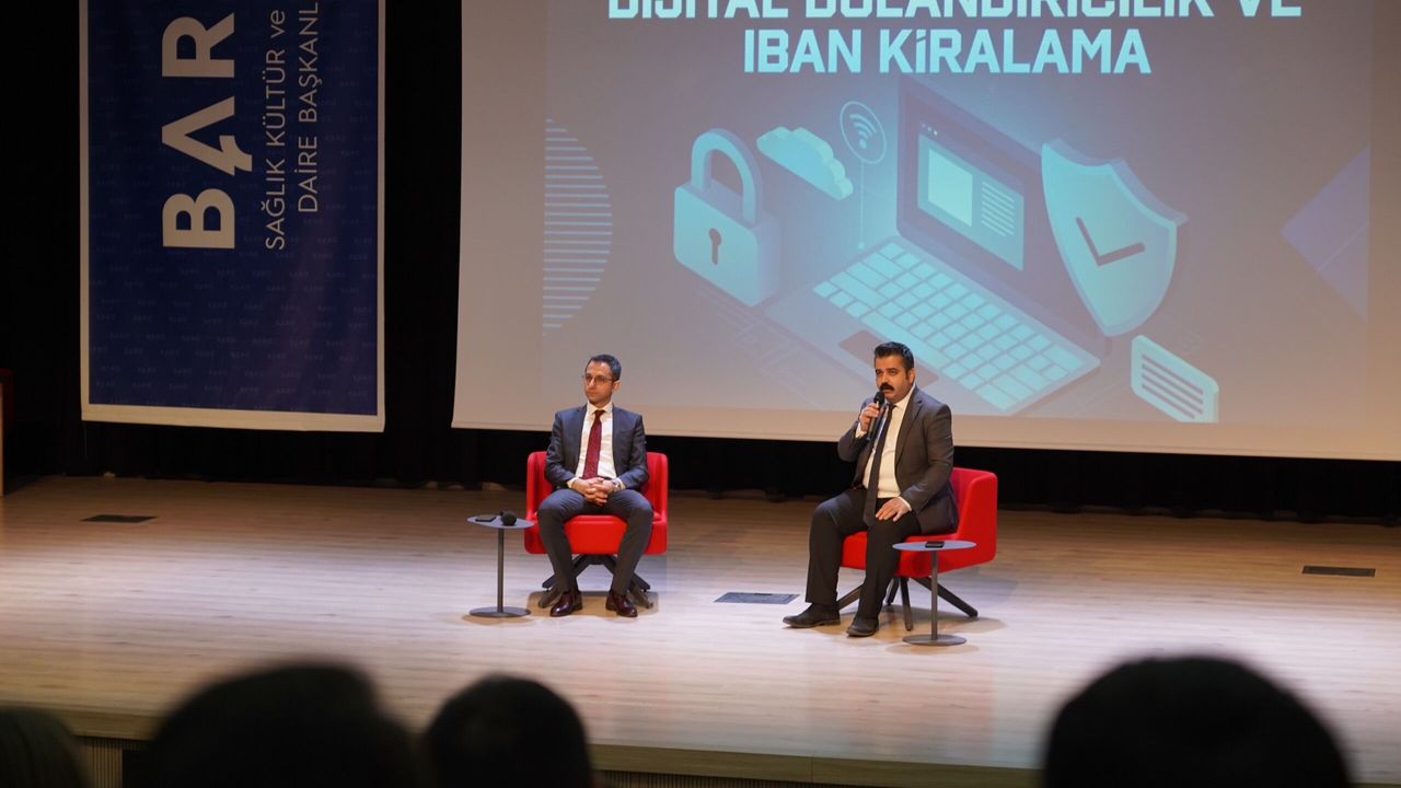 Bartın Üniversitesi ile Bartın Cumhuriyet Başsavcılığı iş birliğinde yaygınlaşan dijital dolandırıcılık faaliyetlerine karşı öğrencileri bilinçlendirmek amacıyla bir program düzenlendi. 'Dijital Dolandırıcılık ve IBAN Kiralama' başlıklı programda Bartın Cumhuriyet Savcıları Mustafa Turan ve Emrullah Omuzoğlu gençlerle bir araya gelerek internet ve sosyal medya üzerinden yapılan dolandırıcılık yöntemleri hakkında bilgilendirmelerde bulundu.