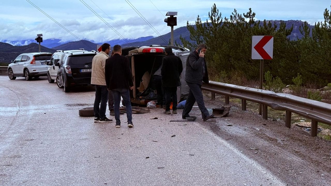 Hızır İlyas YILDIRIM/MUDURNU(Bolu),(DHA) - BOLU'nun Mudurnu ilçesinde yağmur nedeniyle kayganlaşan yolda kontrolden çıkan hafif ticari araç ile otomobilin çarpışması sonucu 2 kişi yaralandı.