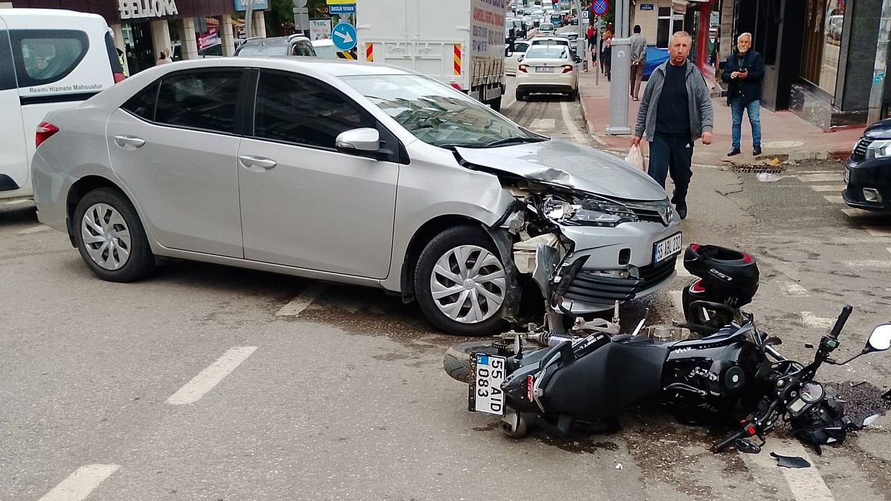 Kaza, saat 09.30 sıralarında İlkadım ilçesi İstasyon Mahallesi Lise Caddesi ile Saadet Caddesi Kavşağı'nda meydana geldi. Lise Caddesi'nden Saadet Caddesi'ne dönüş yapmak isteyen Erkan D.'nin kullandığı 55 ABL 232 plakalı otomobil ile karşı yönden gelen Berat T.’nin kontrolündeki 55 AID 083 plakalı motosiklete çarptı. Kazada Berat T., yaralandı. İhbarla kaza yerine polis ve sağlık ekipleri sevk edildi. Sağlık görevlilerinin müdahalesi sonrası Berat T. hastaneye götürülüp, tedaviye alındı. Polisin ilk kaza raporunda, motosiklet sürücüsü 2918 Sayılı Karayolları Trafik Kanunu'nun 'Kavşaklara yaklaşırken hızını azaltmamak' otomobil sürücüsü ise 'Kavşaklarda ilk geçiş hakkına riayet etmemek' maddesinden kusurlu bulundu.